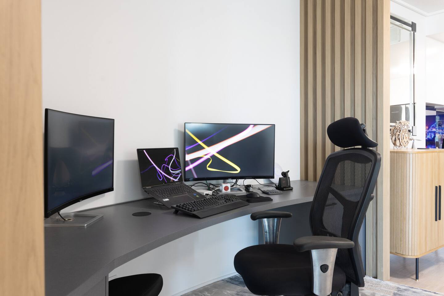Your private room is designed with your comfort and privacy in mind. Enjoy a state-of-the-art smart TV & dedicated workspace in your room, perfect for business & leisure, and a key lockable bedroom door to ensure your peace of mind. A small hypoallergenic, non-shedding Cavoodle may also be your houseguest. So if you're here for work or pleasure, experience modern sophistication and homely warmth on the Brisbane River, offering you a stay that's both inspiring and utterly comfortable.